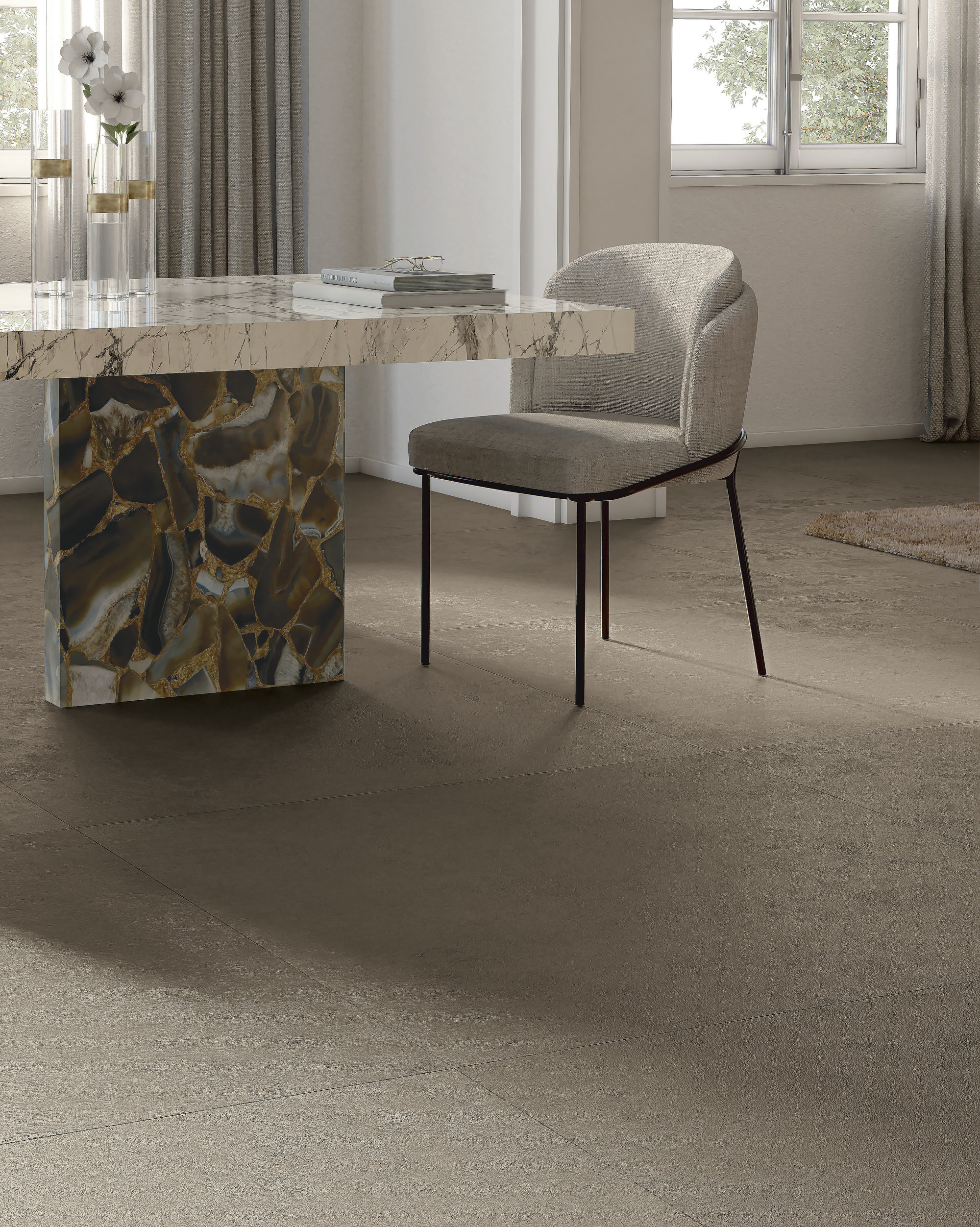 Balance ist die Kollektion aus Feinsteinzeug, die Gleichgewicht und Harmonie in den Mittelpunkt des Projekts stellt. Ihre breite Palette einfarbiger Töne, kombiniert mit einer leicht strukturierten Oberfläche, ermöglicht perfekte Kombinationen mit den charaktervolleren Oberflächen von Fiandre. Balance bietet maximale Vielseitigkeit für Räume mit abgestimmtem und raffiniertem Design.
