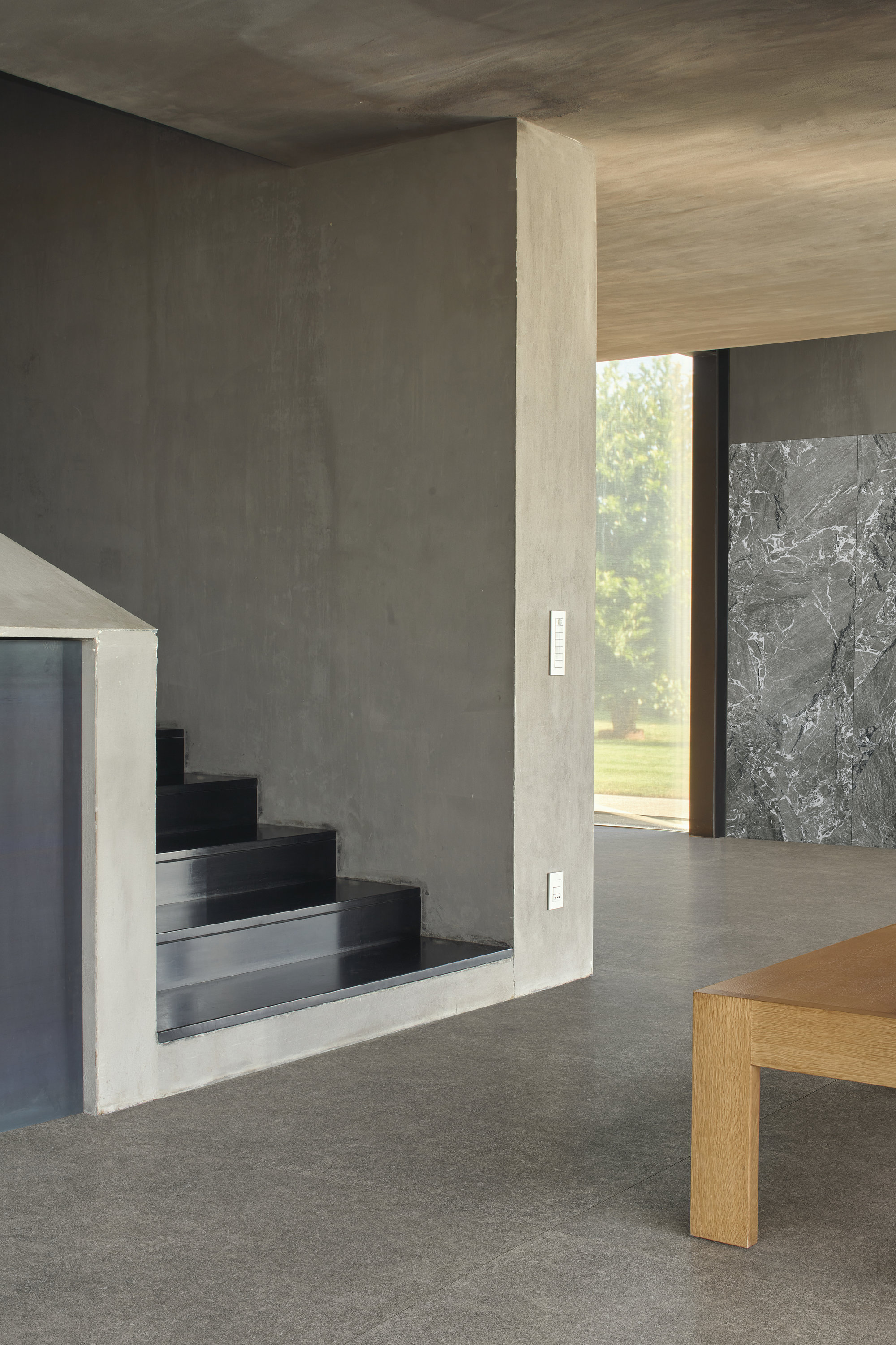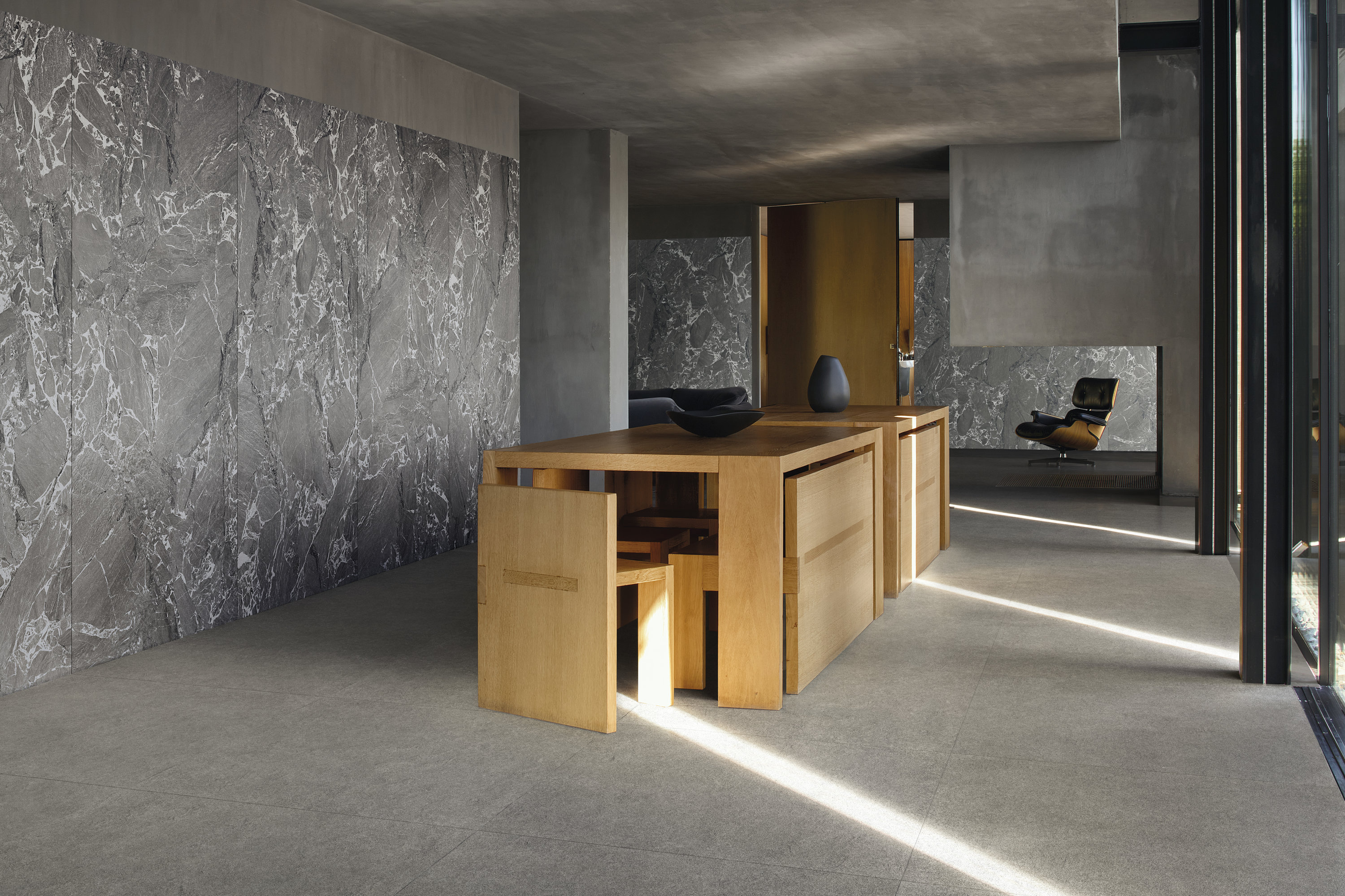 Oberfläche, die die Tradition der arabesken Marmore neu interpretiert, mit einer intensiven Struktur, durchzogen von dunklen Adern, die sich über einen hellgrauen Hintergrund bewegen. Die Wirkung ist dynamisch und lebendig und verleiht den Räumen Rhythmus, ohne das Gleichgewicht zu verlieren. Erhältlich in 8 mm Keramikformaten und als Maximum-Platte 270×120 cm, in den Ausführungen Natural und Natural Plus, schöpft Arabescato Grigio seine Stärke aus der Fähigkeit, Klassik und Moderne zu vereinen und wird so zur idealen Basis für alle, die Eleganz und Bewegung zum Ausdruck bringen möchten. Diese Oberfläche im Maximum-Format wird mit wasserbasierter Technologie hergestellt: hervorragende ästhetische Wirkung, hohe Bildschärfe und Materialeffekt – ganz im Zeichen der ökologischen Nachhaltigkeit.