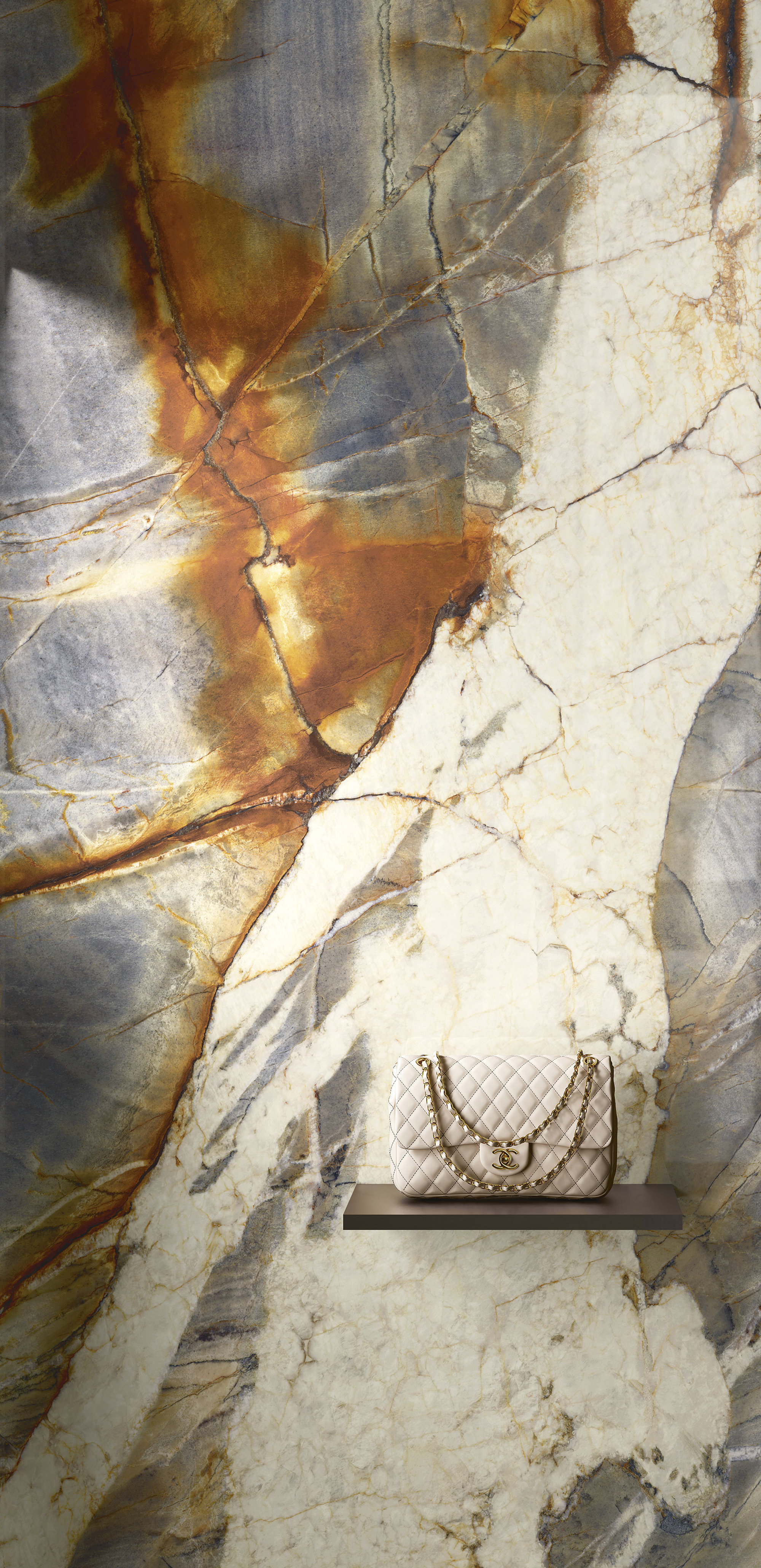 Eine Mischung aus Schattierungen von seltener Schönheit für einen keramischen Quarzit von außergewöhnlicher Wirkung, bei dem das Blau, vom tiefsten bis zum zartesten, mit breiten weißen Schlitzen sowie braunen und orangefarbenen Einsätzen gesprenkelt ist. Die aufeinander abgestimmten “book-matched” Seiten erzeugen Symmetriespiele, die durch die glänzende Oberfläche noch eindrucksvoller werden. Eine kühne und spektakuläre Oberfläche, die jedes Projekt und jede Einrichtung schier unvergesslich macht.