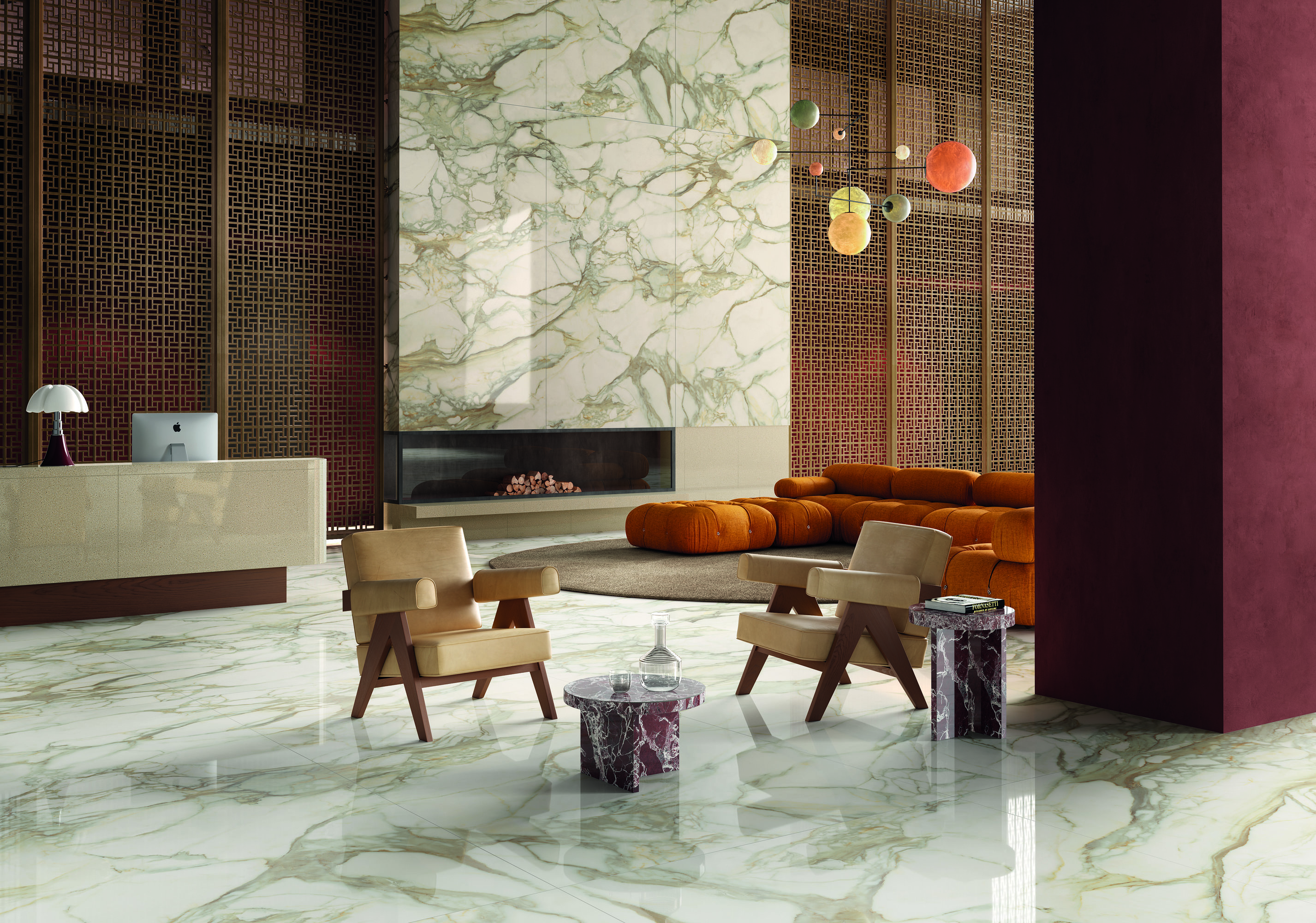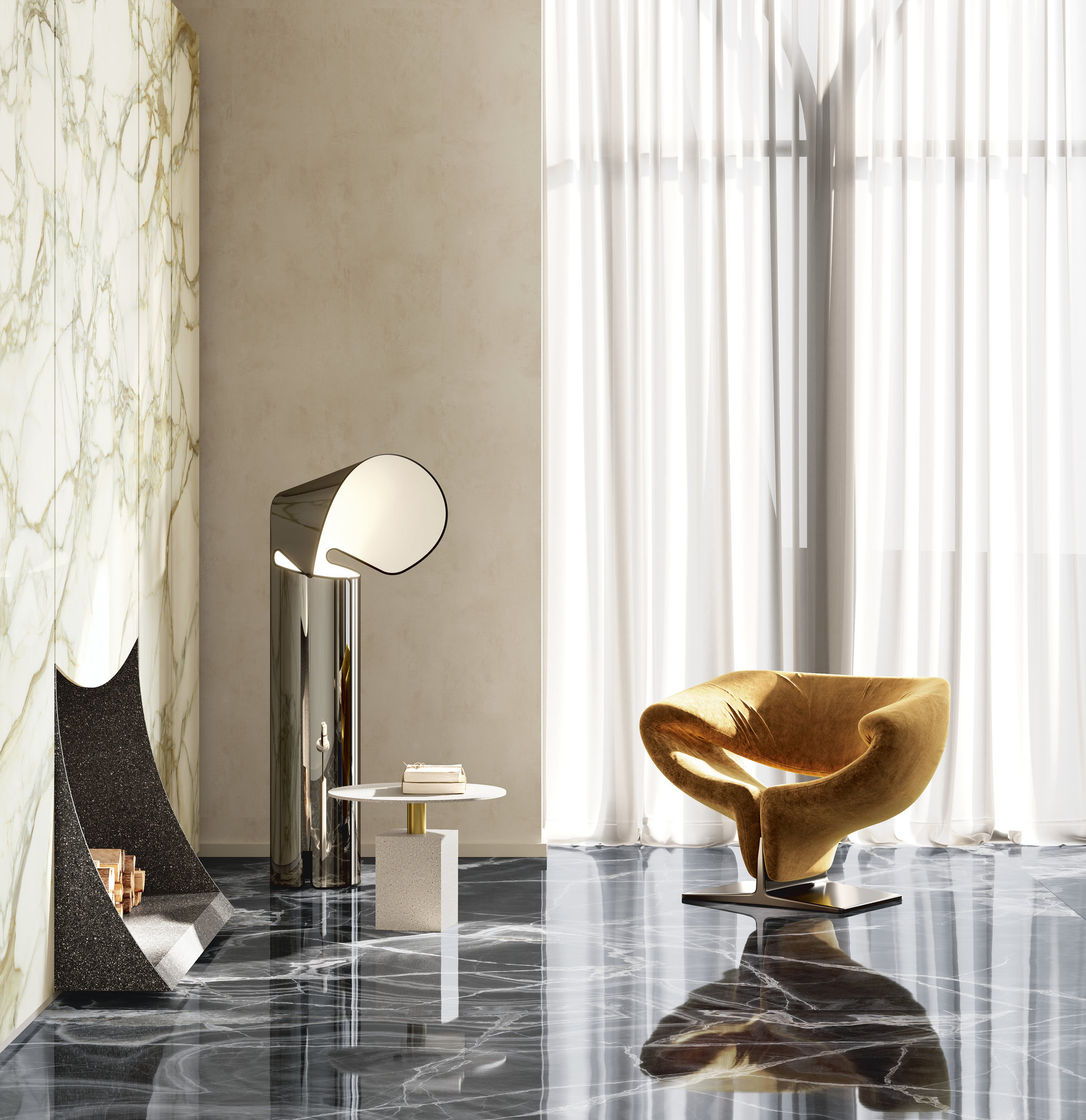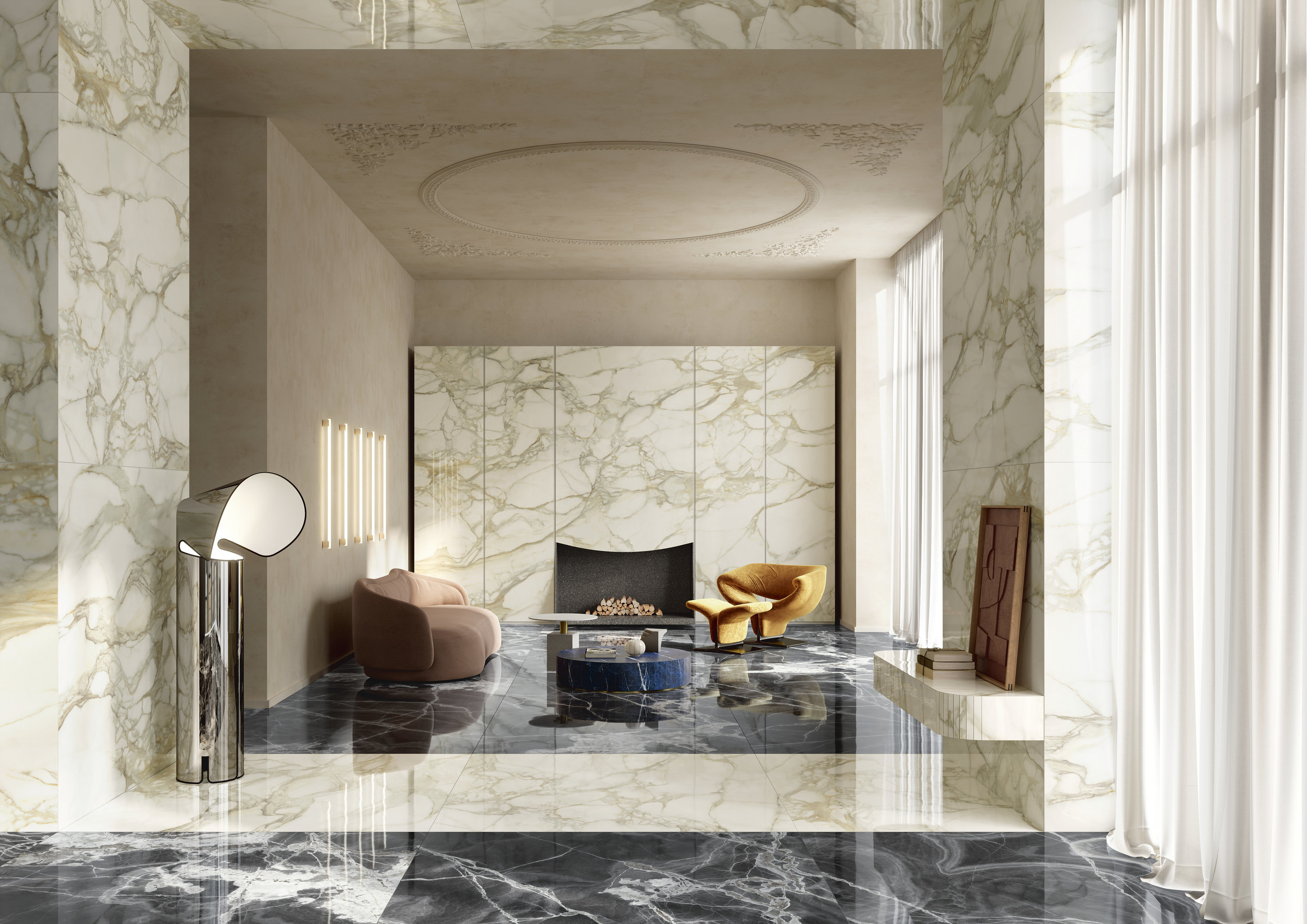 Calacatta Dorato zieht mit goldenen, tiefen und geschwungenen Adern die Aufmerksamkeit auf sich, die den Räumen Wärme, Bewegung und Raffinesse verleihen. Diese keramische Oberfläche eignet sich ideal zur Aufwertung von Privathäusern, gewerblichen Projekten und Hospitality-Objekten, bei denen hochwertiges Design nicht auf Kosten von Funktionalität, Widerstandsfähigkeit und einfacher Pflege gehen darf. Die Polished-Oberfläche verleiht der Textur Helligkeit und Glanz, während die Natural-Oberfläche ein mattes, moderneres Erscheinungsbild bietet. Erhältlich in klassischen und Maximum-Formaten.