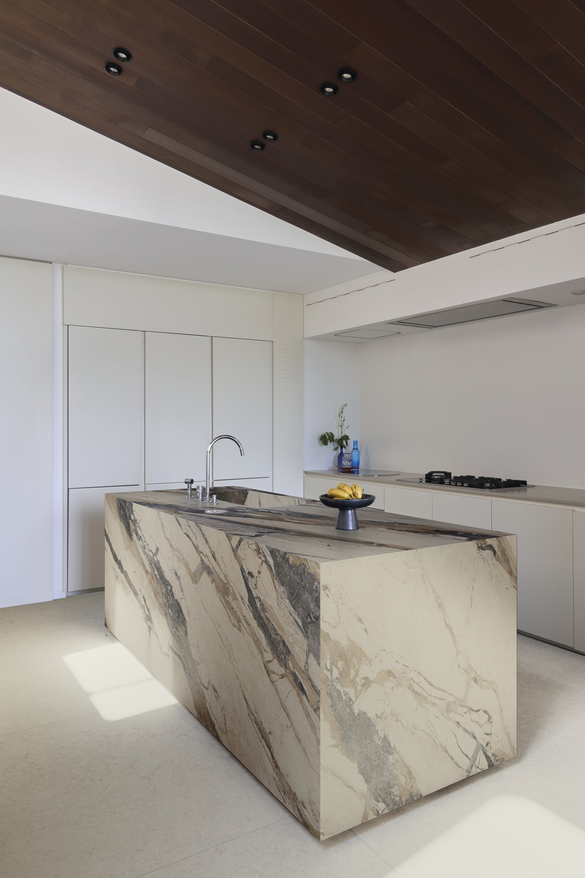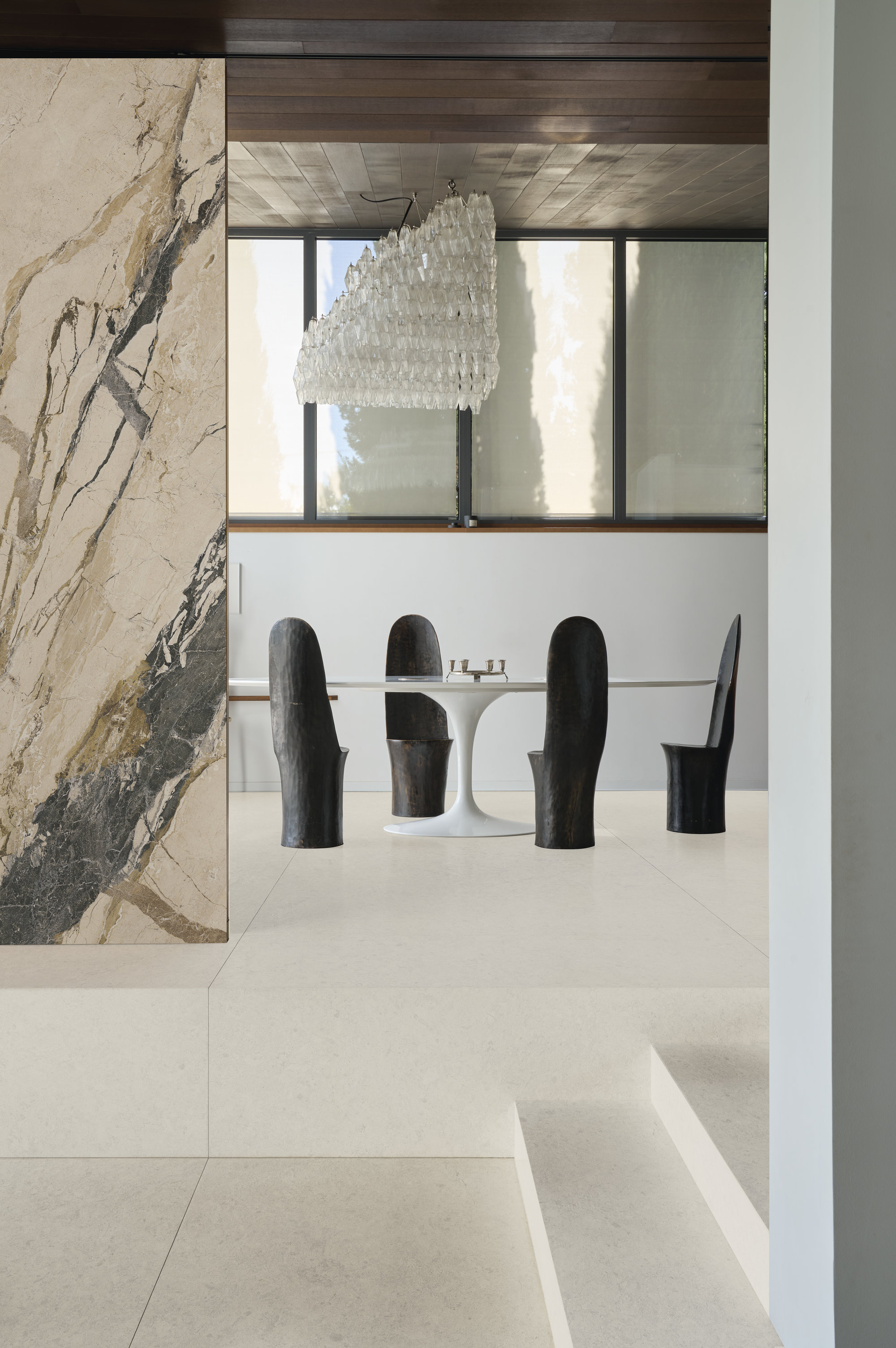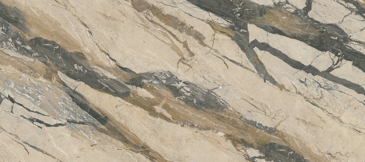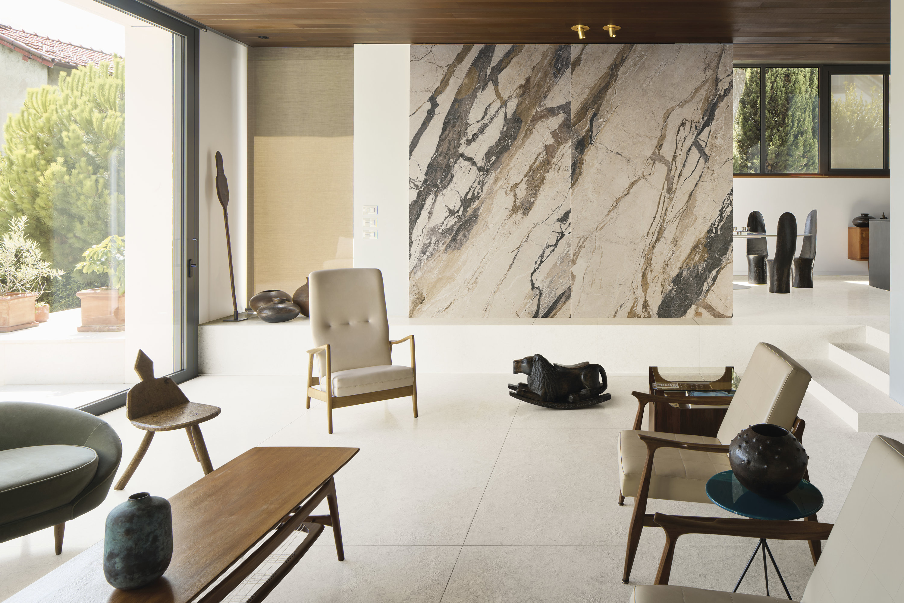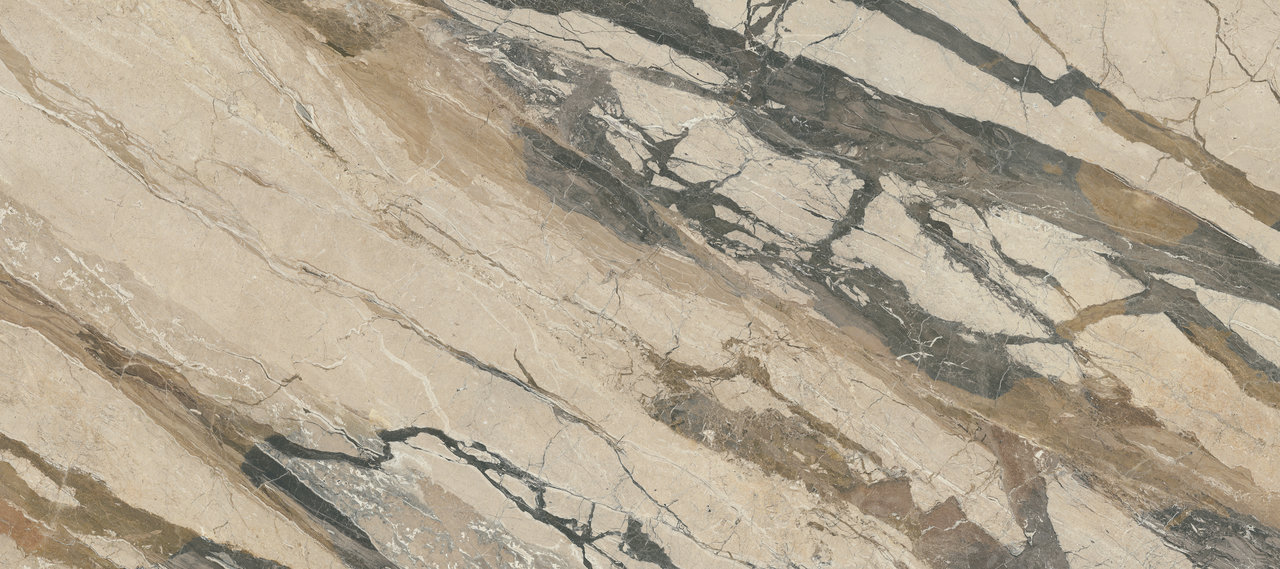 Ein Stein von großer visueller Energie, geprägt von einem Geflecht aus markanten Adern, die sich über einem hellen Hintergrund überlagern. Die Kontraste zwischen Grau, Weiß und dunkleren Tönen verleihen Tiefe und Bewegung, wie eine Oberfläche in ständiger Verwandlung. Breccia Phoenix ist für all jene gedacht, die Ausdruckskraft und Charakter suchen und die Oberfläche zum Protagonisten des Raums machen wollen. Erhältlich in den Ausführungen Natural und Natural Plus, in traditionellen Formaten und als Platte, bringt sie eine Sprache in die Räume, die zugleich kraftvoll und raffiniert ist. Die Großplatte Breccia Phoenix wird mit revolutionärer wasserbasierter Technologie hergestellt. Eine absolute Neuheit für die Branche, die ökologische Nachhaltigkeit mit höchster ästhetischer Qualität verbindet.